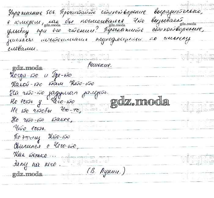 ОТВЕТ на задание № 506 Учебник по Русскому языку 6 класс Баранов