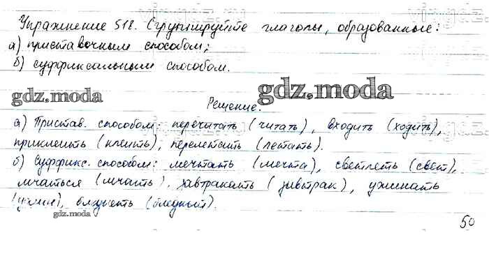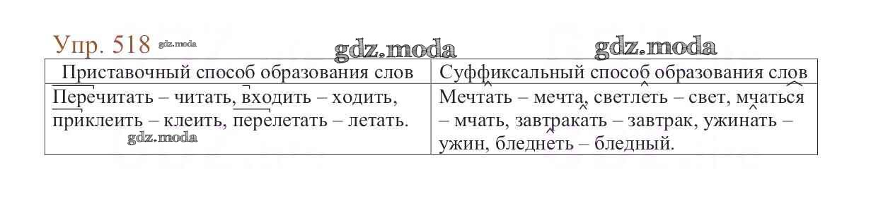 ОТВЕТ на задание № 518 Учебник по Русскому языку 6 класс Баранов