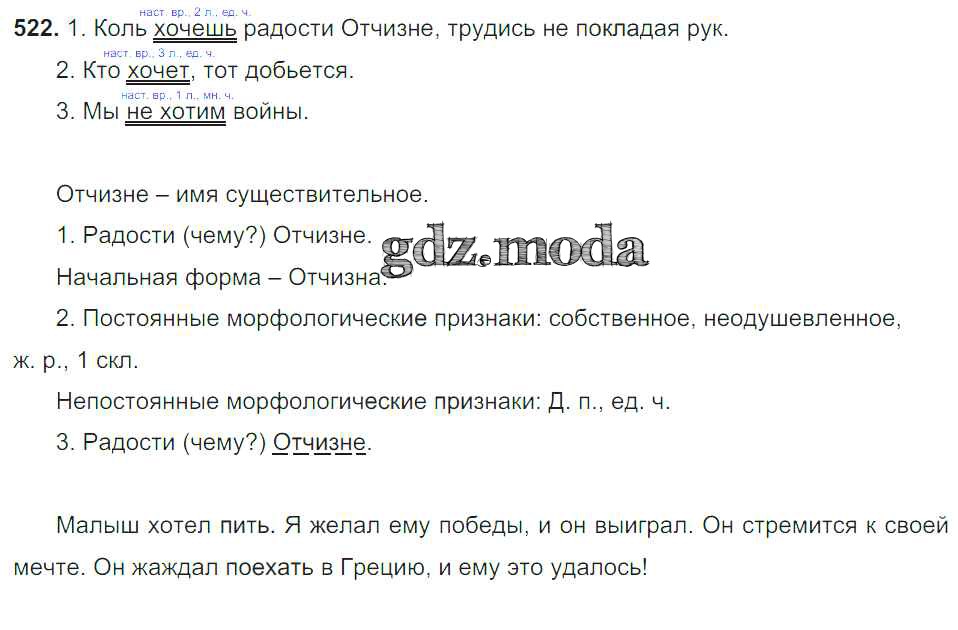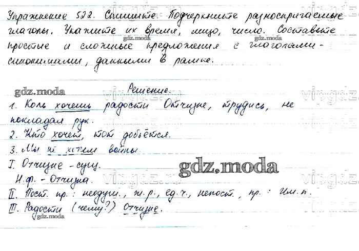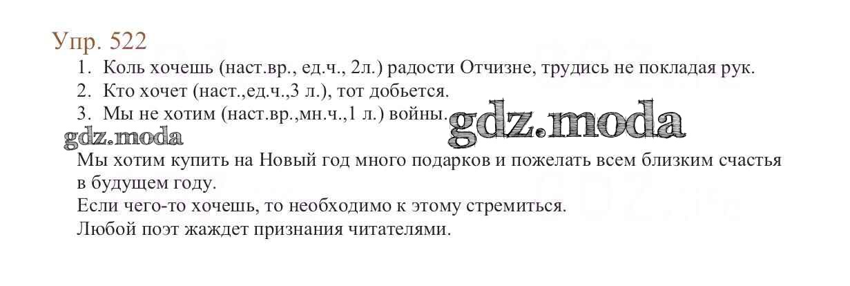 ОТВЕТ на задание № 522 Учебник по Русскому языку 6 класс Баранов