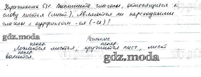 ОТВЕТ на задание № 531 Учебник по Русскому языку 6 класс Баранов