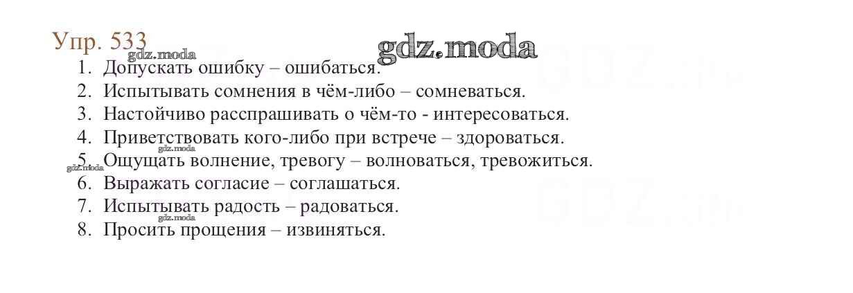 ОТВЕТ на задание № 533 Учебник по Русскому языку 6 класс Баранов