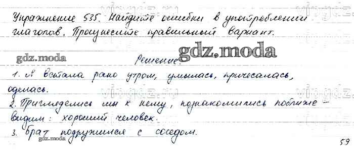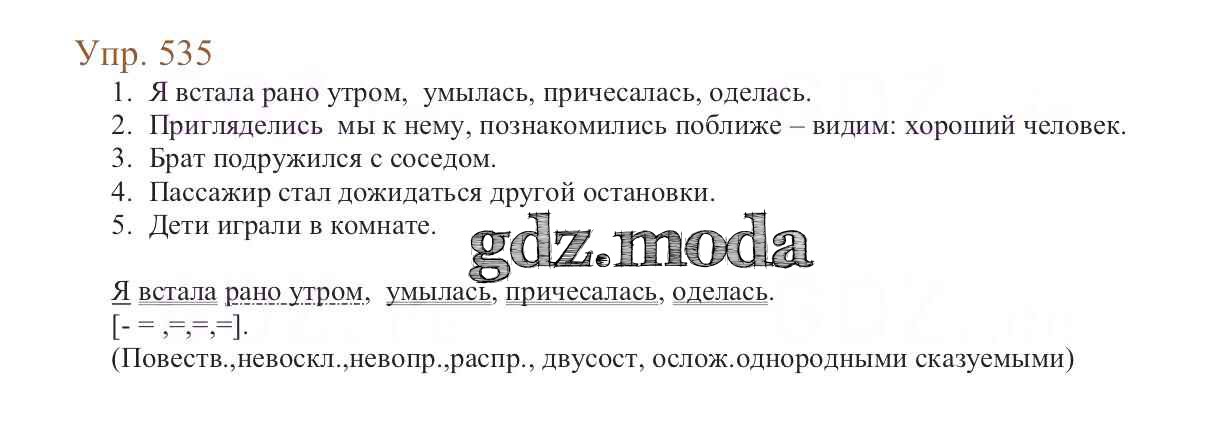 ОТВЕТ на задание № 535 Учебник по Русскому языку 6 класс Баранов