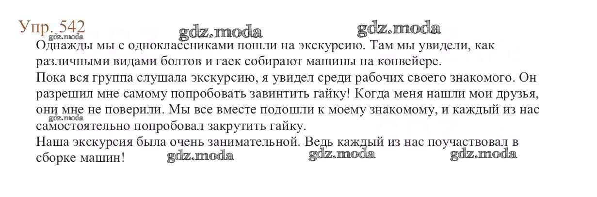 ОТВЕТ на задание № 542 Учебник по Русскому языку 6 класс Баранов