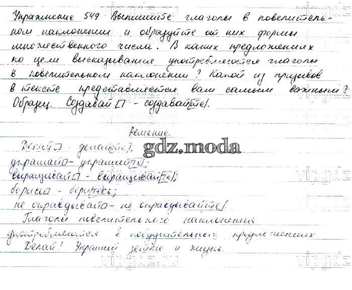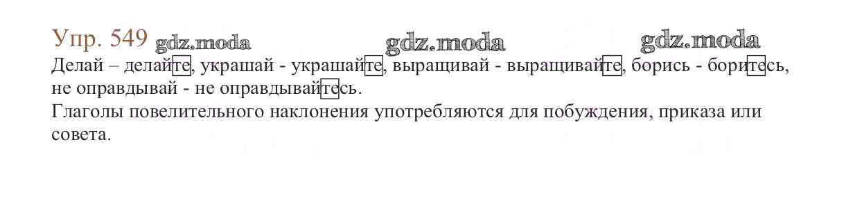 ОТВЕТ на задание № 549 Учебник по Русскому языку 6 класс Баранов