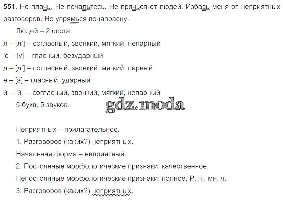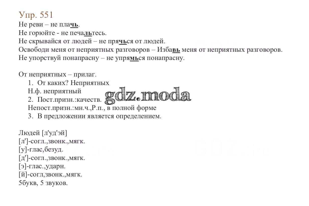 ОТВЕТ на задание № 551 Учебник по Русскому языку 6 класс Баранов