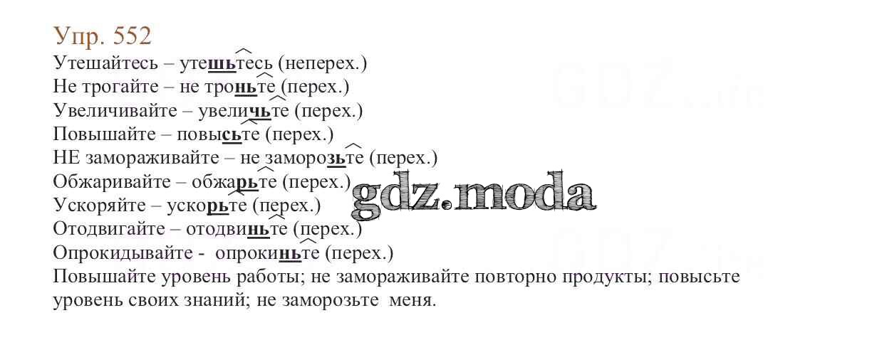 ОТВЕТ на задание № 552 Учебник по Русскому языку 6 класс Баранов