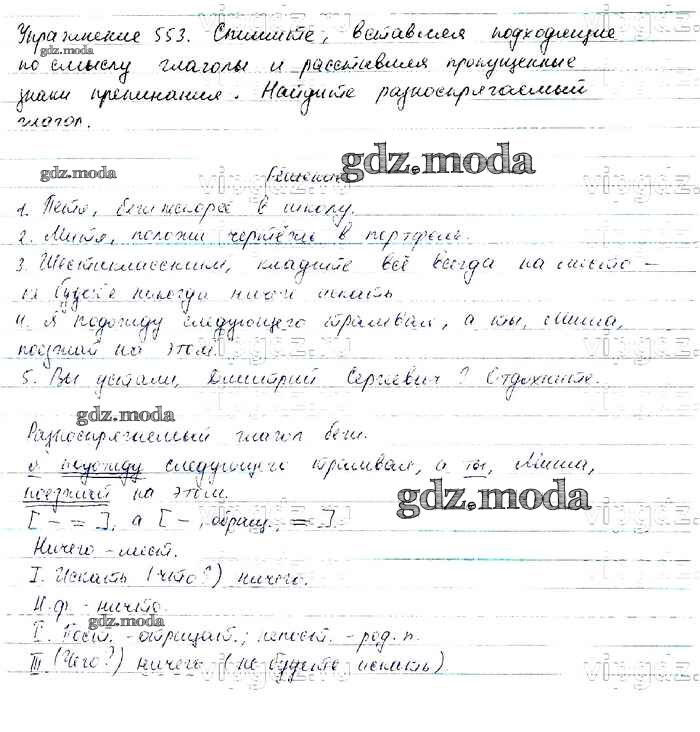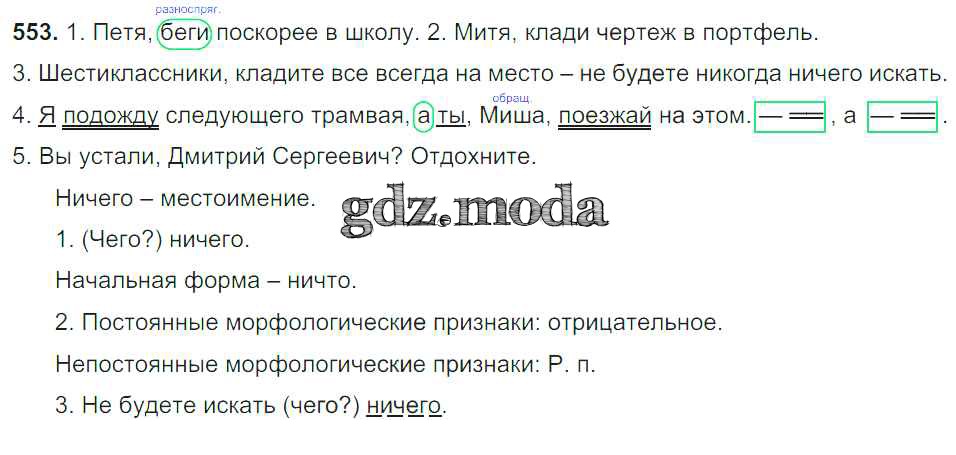 ОТВЕТ на задание № 553 Учебник по Русскому языку 6 класс Баранов