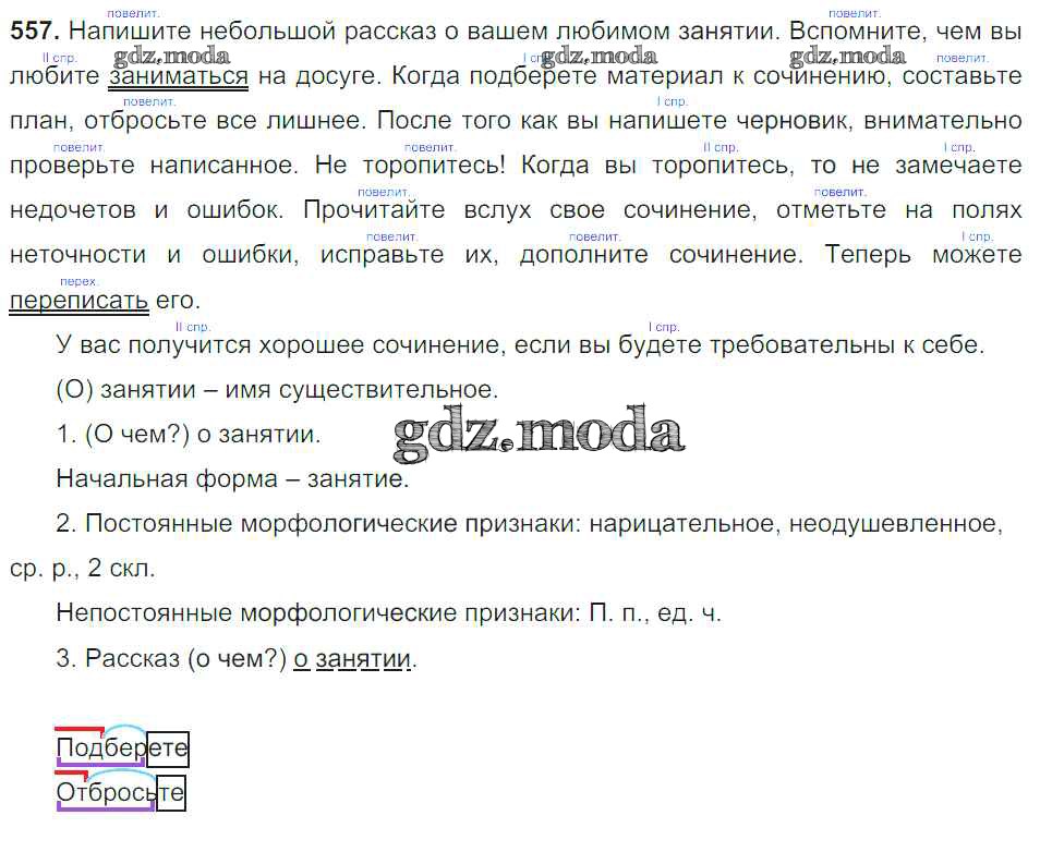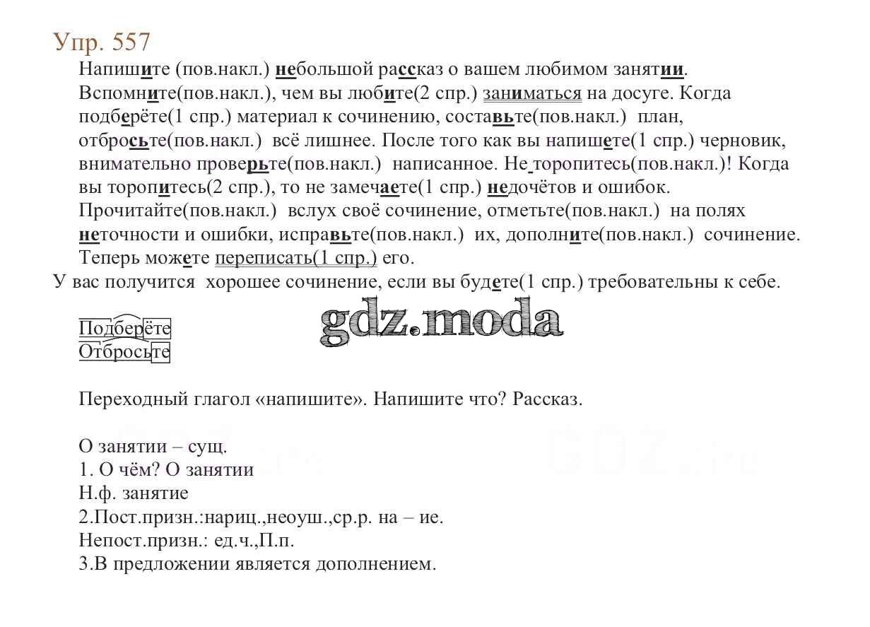 ОТВЕТ на задание № 557 Учебник по Русскому языку 6 класс Баранов