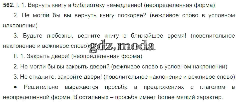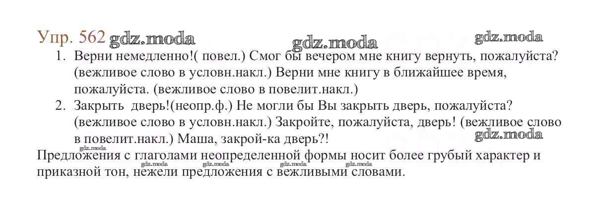 ОТВЕТ на задание № 562 Учебник по Русскому языку 6 класс Баранов