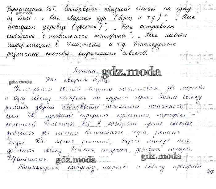 ОТВЕТ на задание № 565 Учебник по Русскому языку 6 класс Баранов
