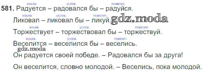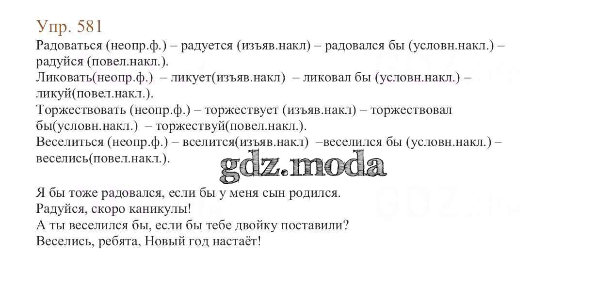 ОТВЕТ на задание № 581 Учебник по Русскому языку 6 класс Баранов