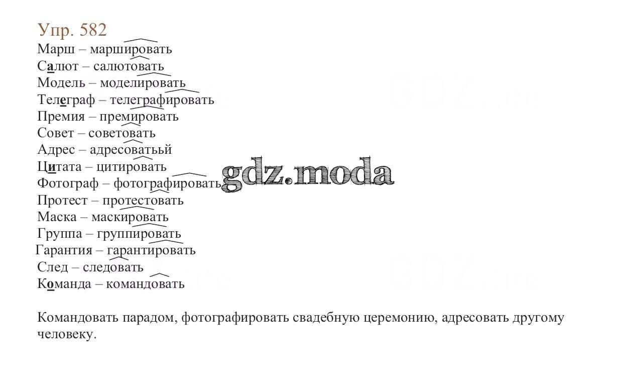 ОТВЕТ на задание № 582 Учебник по Русскому языку 6 класс Баранов