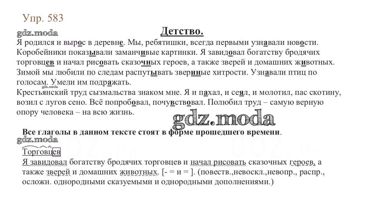 ОТВЕТ на задание № 583 Учебник по Русскому языку 6 класс Баранов