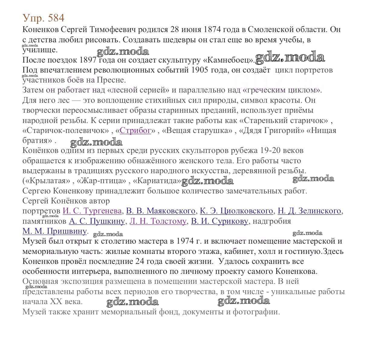 ОТВЕТ на задание № 584 Учебник по Русскому языку 6 класс Баранов