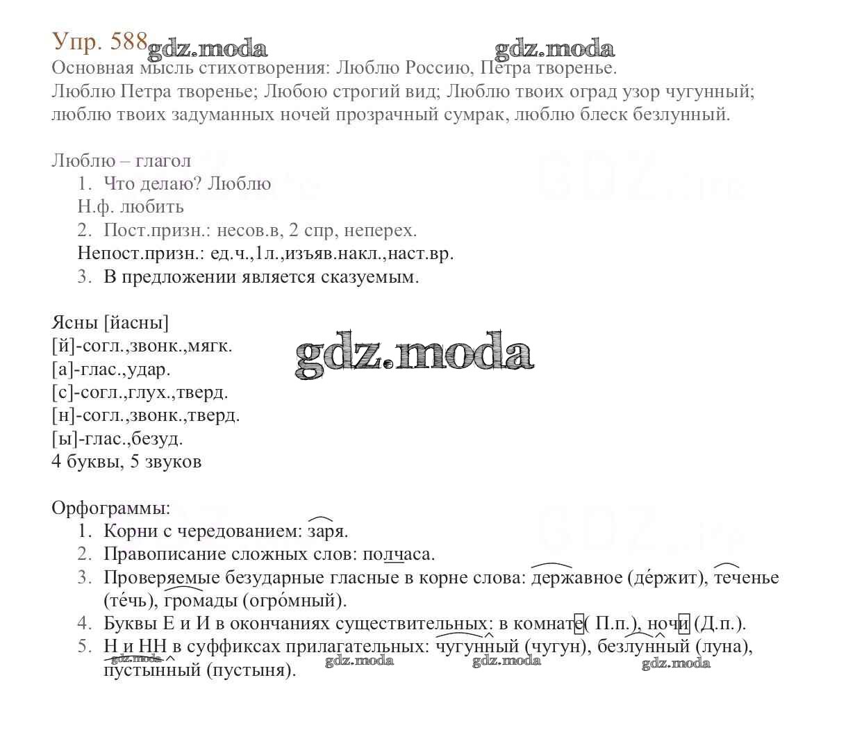 ОТВЕТ на задание № 588 Учебник по Русскому языку 6 класс Баранов