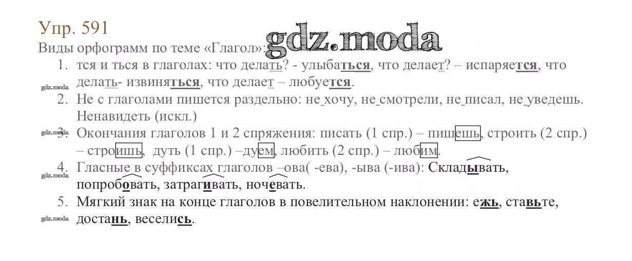 ОТВЕТ на задание № 591 Учебник по Русскому языку 6 класс Баранов