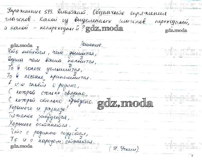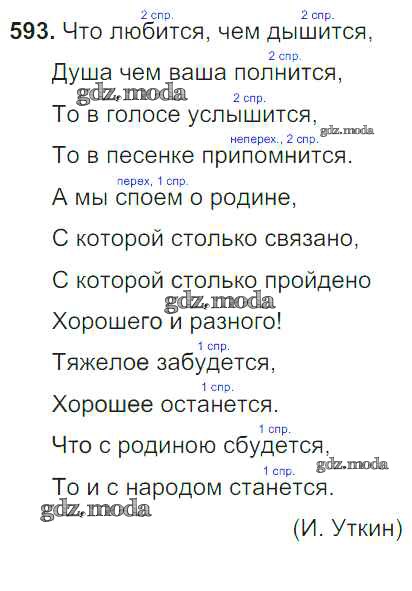 ОТВЕТ на задание № 593 Учебник по Русскому языку 6 класс Баранов