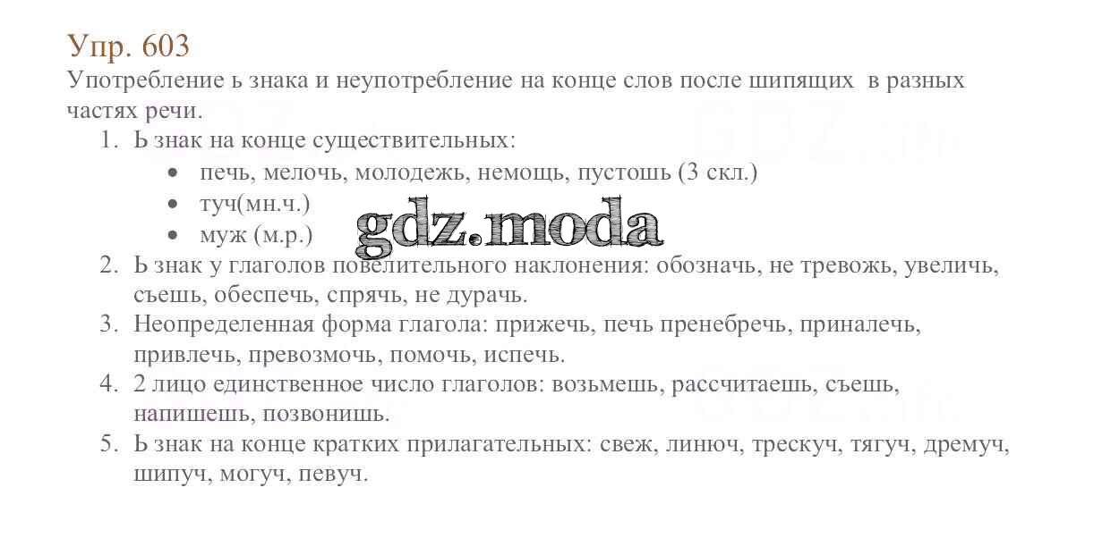ОТВЕТ на задание № 603 Учебник по Русскому языку 6 класс Баранов