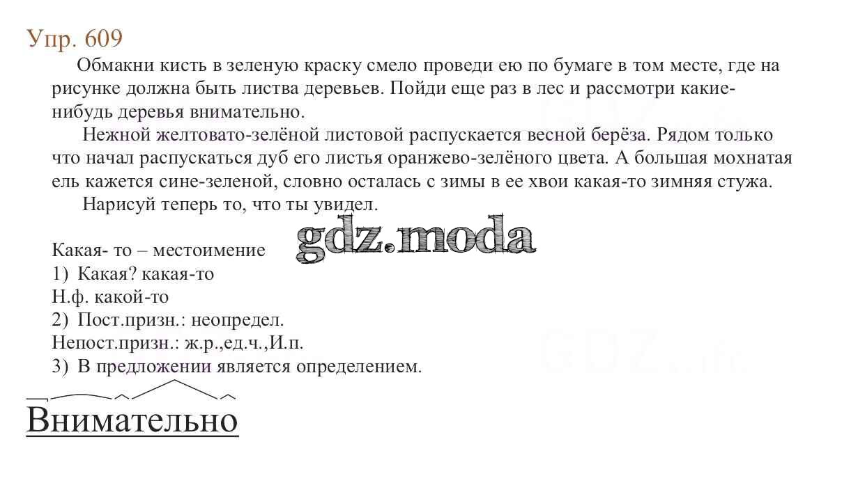 ОТВЕТ на задание № 609 Учебник по Русскому языку 6 класс Баранов