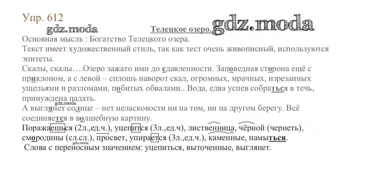 ОТВЕТ на задание № 612 Учебник по Русскому языку 6 класс Баранов