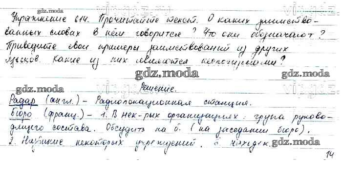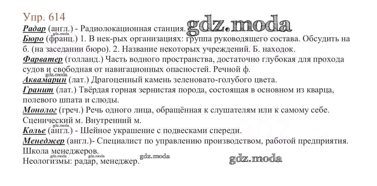 ОТВЕТ на задание № 614 Учебник по Русскому языку 6 класс Баранов