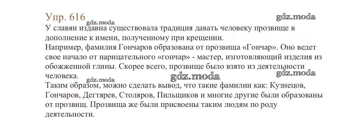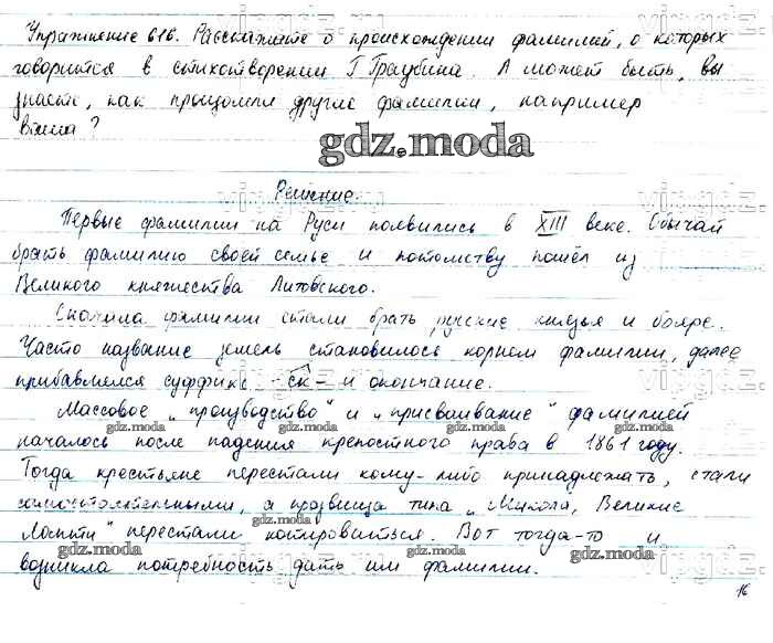 ОТВЕТ на задание № 616 Учебник по Русскому языку 6 класс Баранов