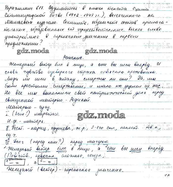 ОТВЕТ на задание № 617 Учебник по Русскому языку 6 класс Баранов