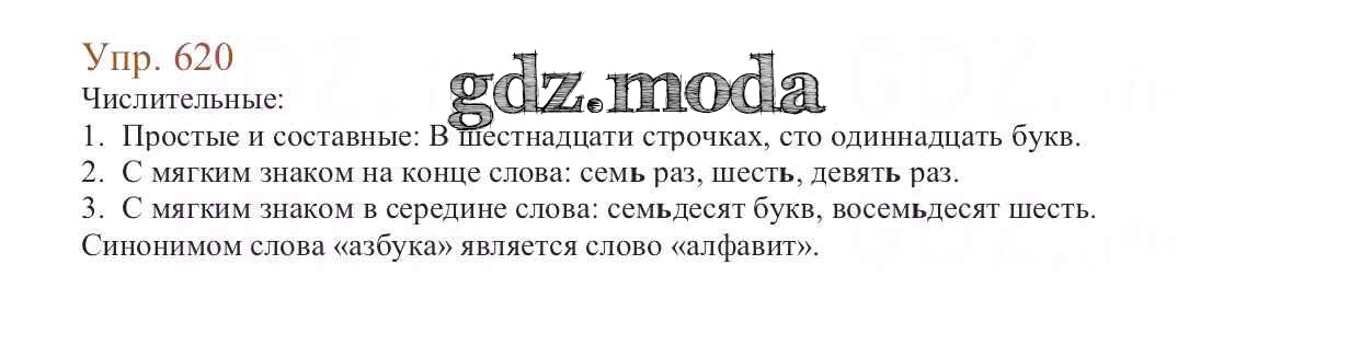 ОТВЕТ на задание № 620 Учебник по Русскому языку 6 класс Баранов