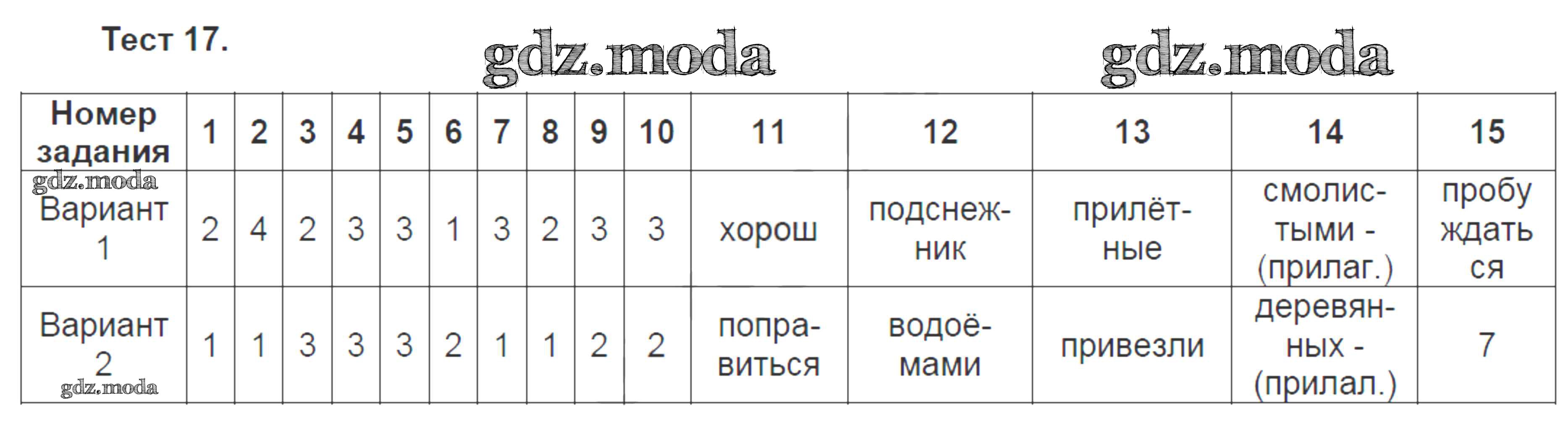 ГДЗ решение к заданию № Тест №17 Русский язык 6 класс тесты Груздева Е.Н. (к уч. Разумовской) Экзамен 2015 ФГОС бесплатно на гдз.мода!