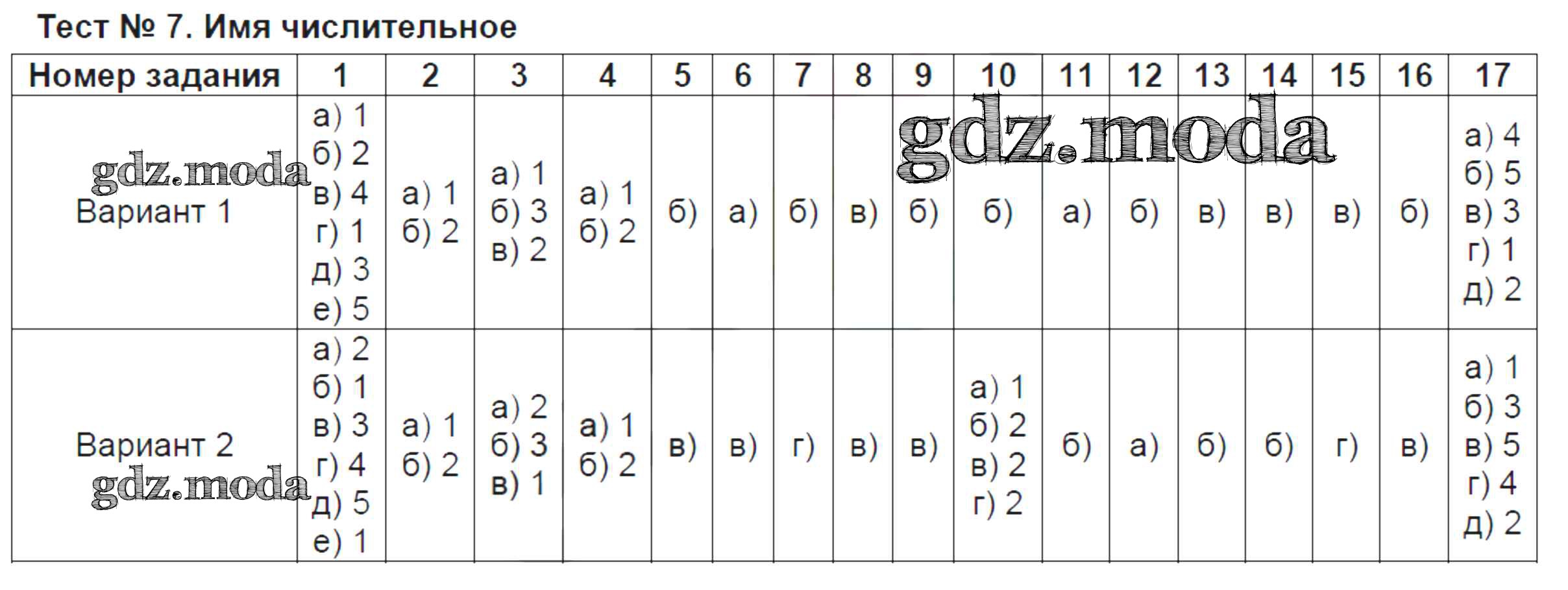 ГДЗ решение к заданию № Тест №7. Имя числительное Русский язык 6 класс Тематические тесты Каськова И.А. Просвещение 2016 ФГОС бесплатно на гдз.мода!