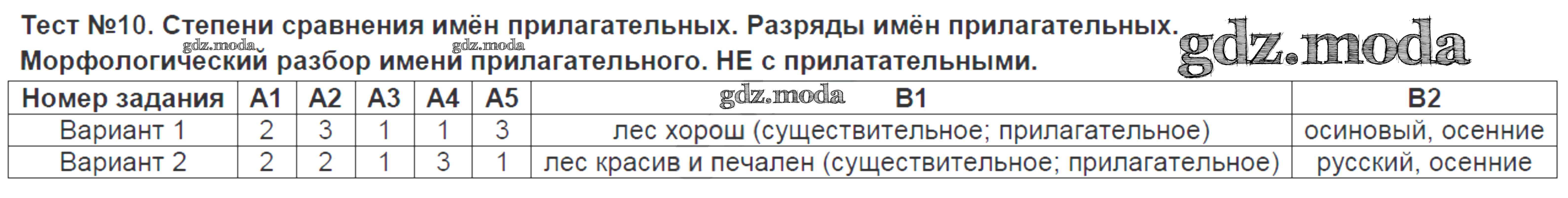 ГДЗ решение к заданию № Тест-10. Степени сравнения имён прилагательных. Разряды имён прилагательных Русский язык 6 класс контрольно-измерительные материалы (КИМ) Аксенова Л.А. Экзамен 2014 ФГОС бесплатно на гдз.мода!