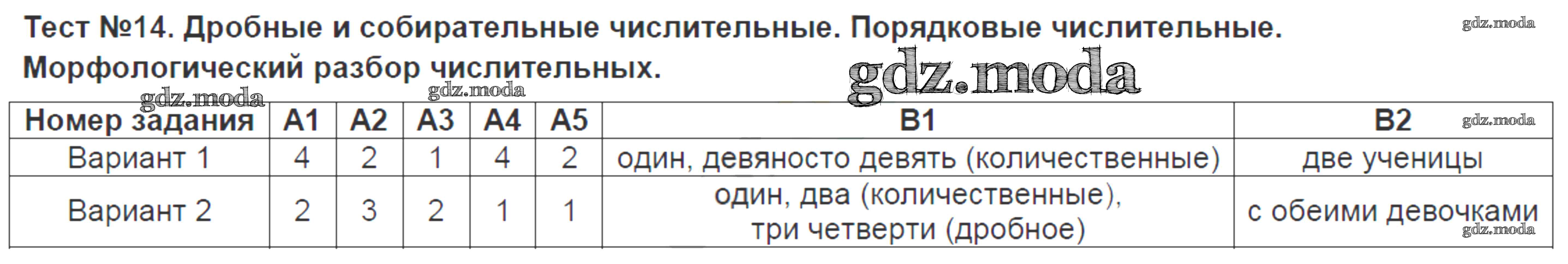 ГДЗ решение к заданию № Тест-14. Дробные и собирательные числительные. Порядковые числительные Русский язык 6 класс контрольно-измерительные материалы (КИМ) Аксенова Л.А. Экзамен 2014 ФГОС бесплатно на гдз.мода!
