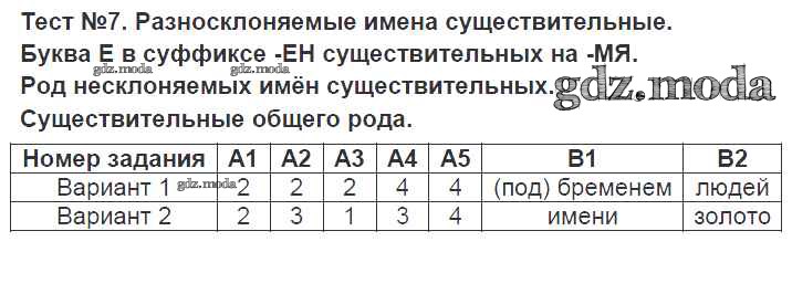 ГДЗ решение к заданию № Тест-7. Разносклоняемые имена существительные Русский язык 6 класс контрольно-измерительные материалы (КИМ) Аксенова Л.А. Экзамен 2014 ФГОС бесплатно на гдз.мода!