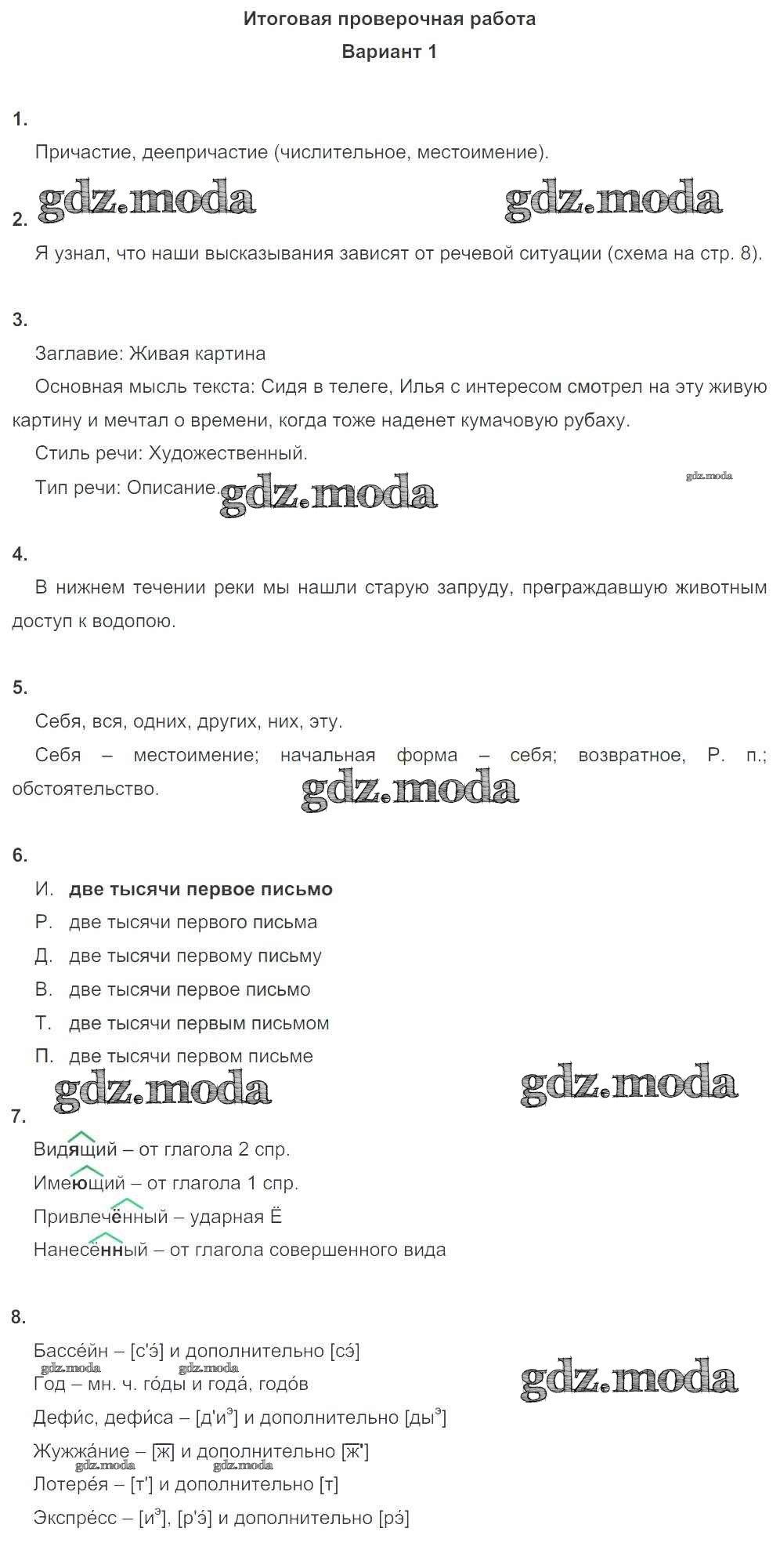 ГДЗ решение к заданию № Вариант-1 Русский язык 6 класс Тетрадь для оценки качества знаний Львов В.В. (к уч. Разумовской) Дрофа 2015 ФГОС бесплатно на гдз.мода!