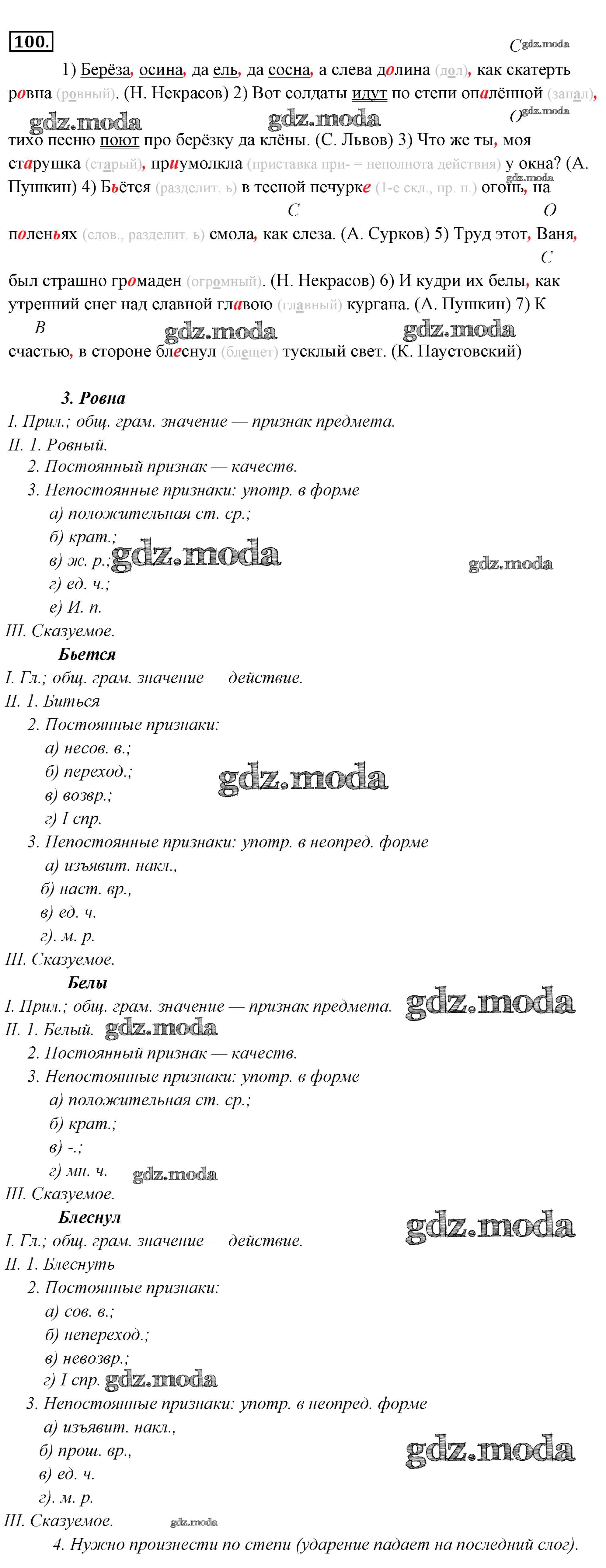 ОТВЕТ на задание № 100 Учебник по Русскому языку 6 класс Львова
