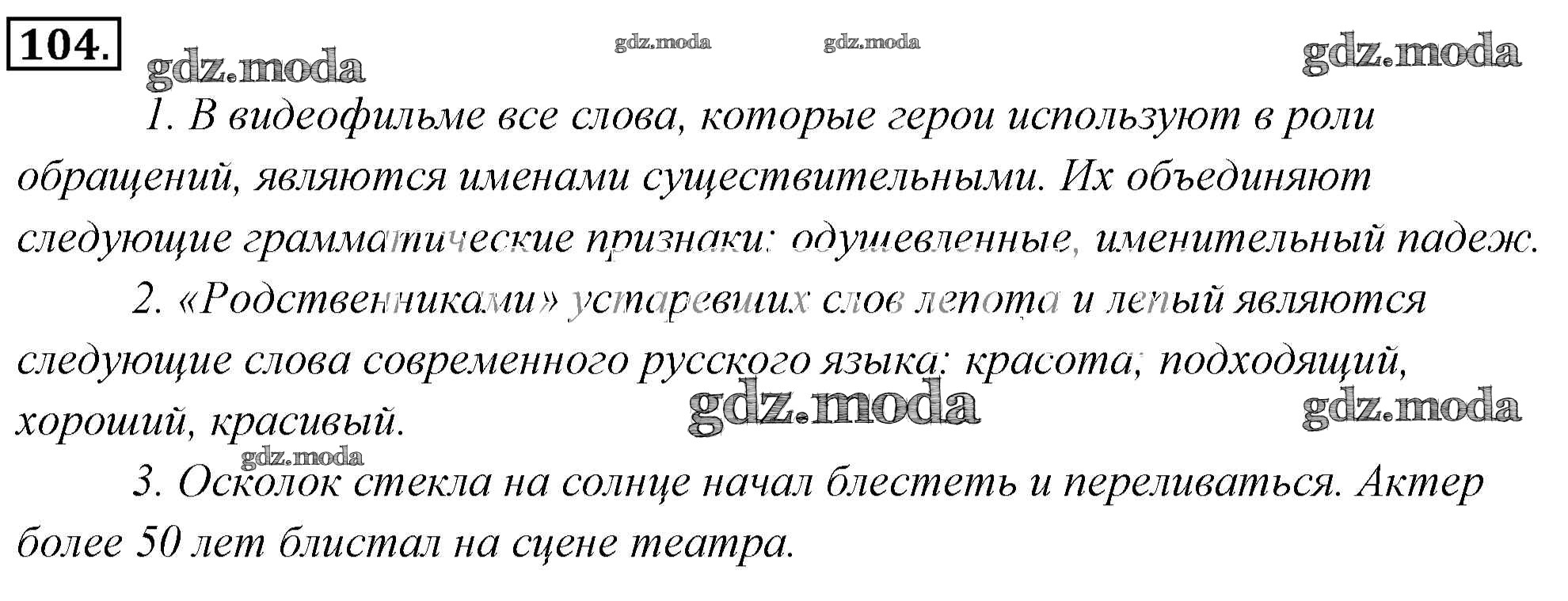 ОТВЕТ на задание № 104 Учебник по Русскому языку 6 класс Львова