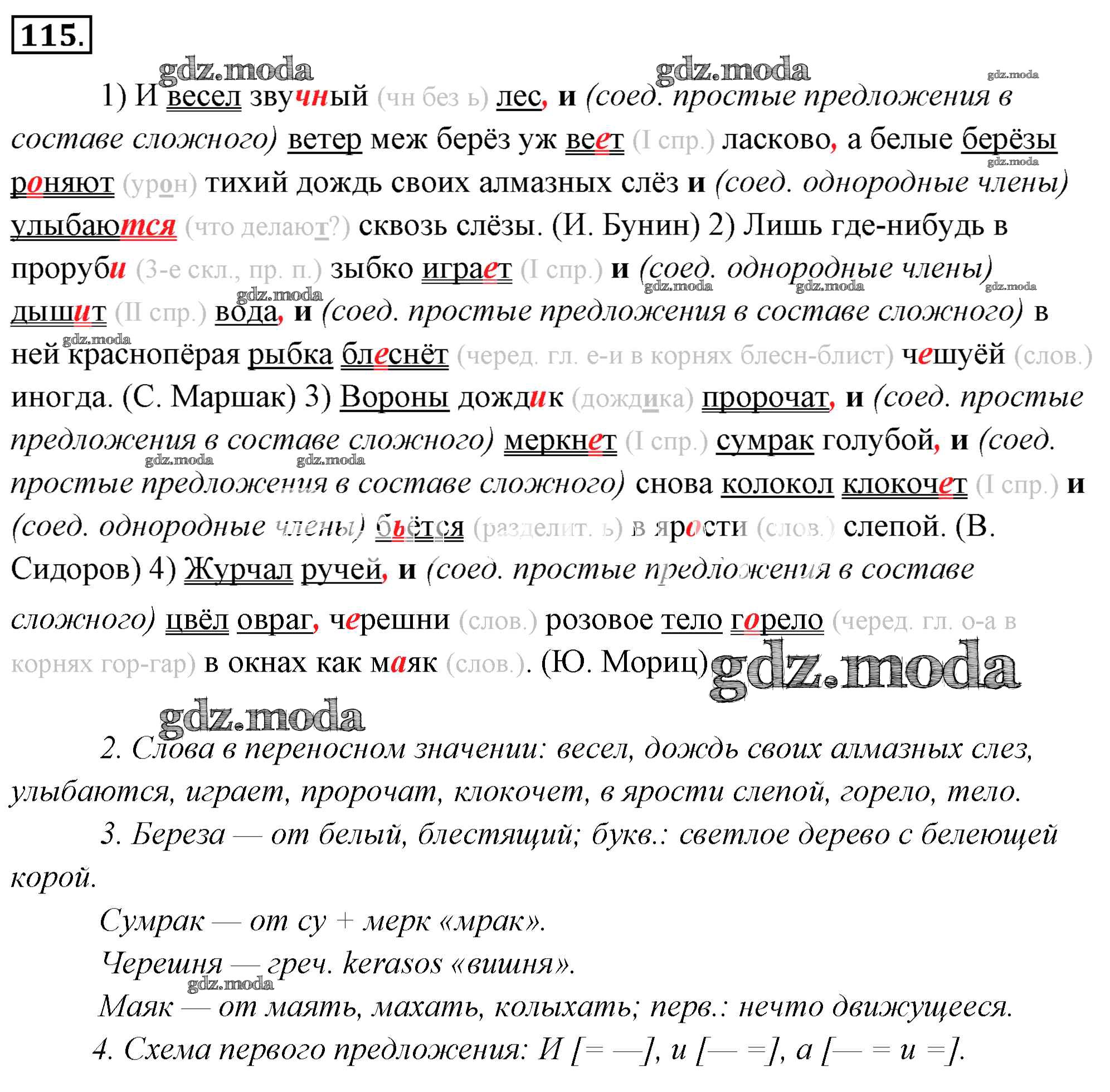 ГДЗ решение к заданию № 115 Русский язык 6 класс Львов Мнемозина 2013 Часть 1, Часть 2 ФГОС бесплатно на гдз.мода!