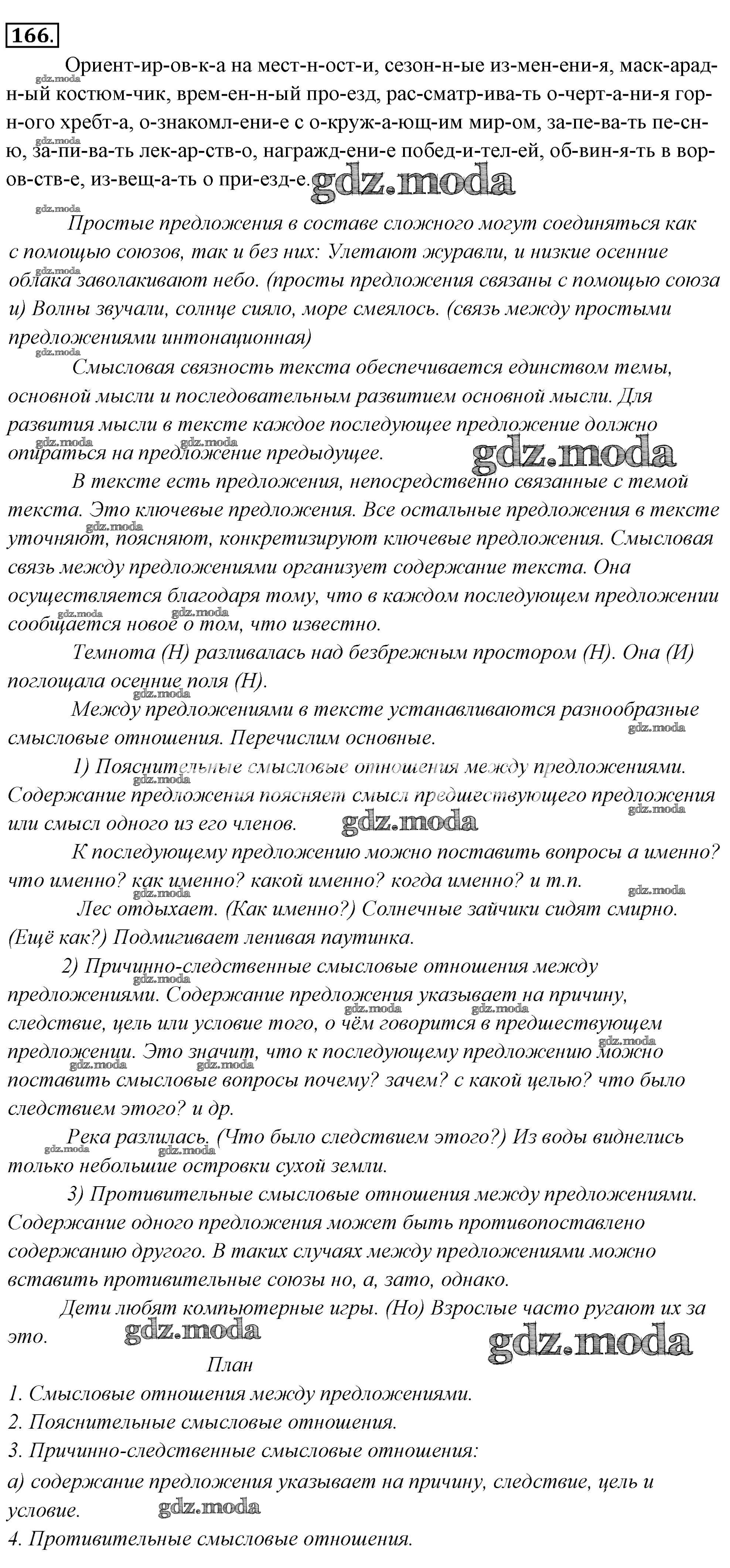 ГДЗ решение к заданию № 166 Русский язык 6 класс Львов Мнемозина 2013 Часть 1, Часть 2 ФГОС бесплатно на гдз.мода!