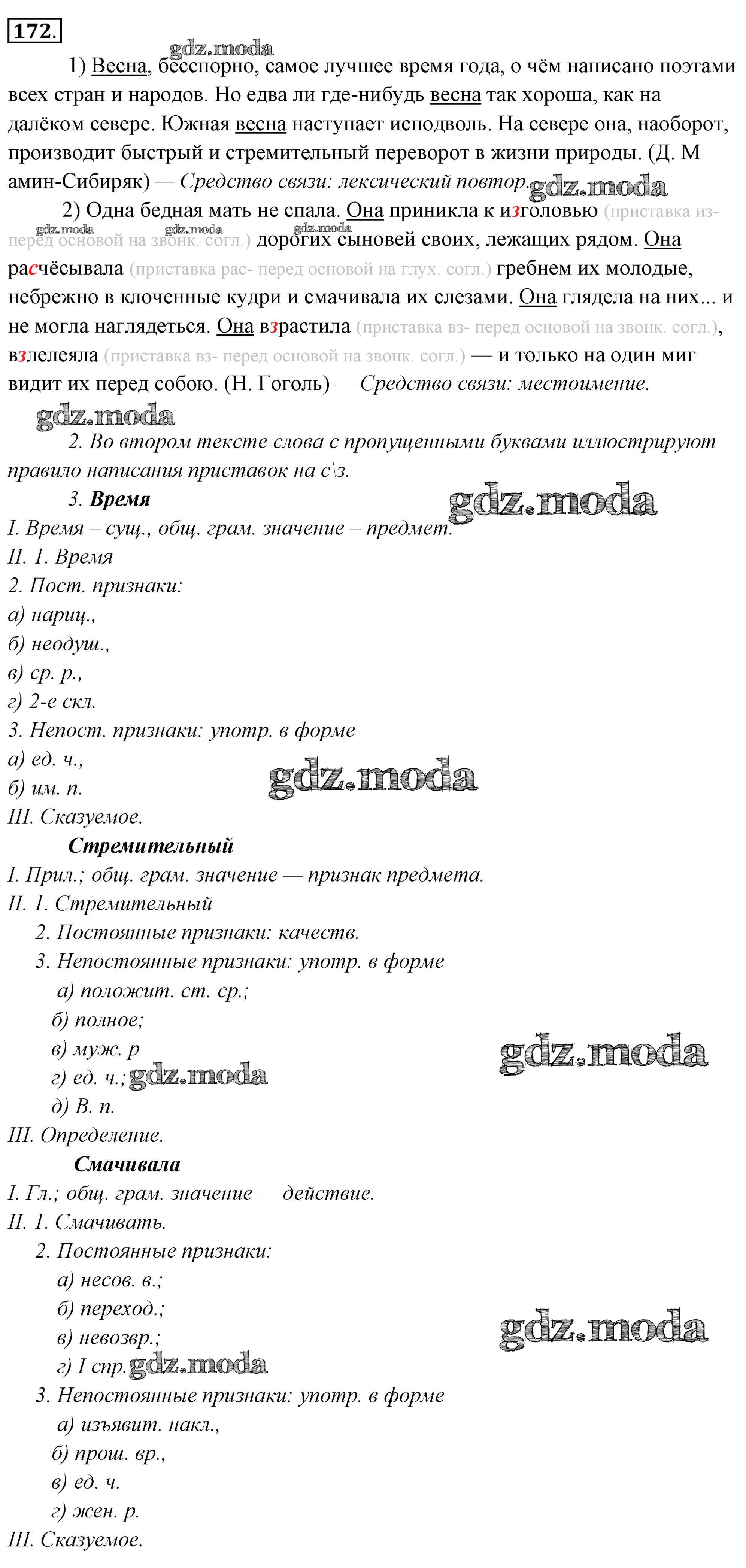 ГДЗ решение к заданию № 172 Русский язык 6 класс Львов Мнемозина 2013 Часть 1, Часть 2 ФГОС бесплатно на гдз.мода!
