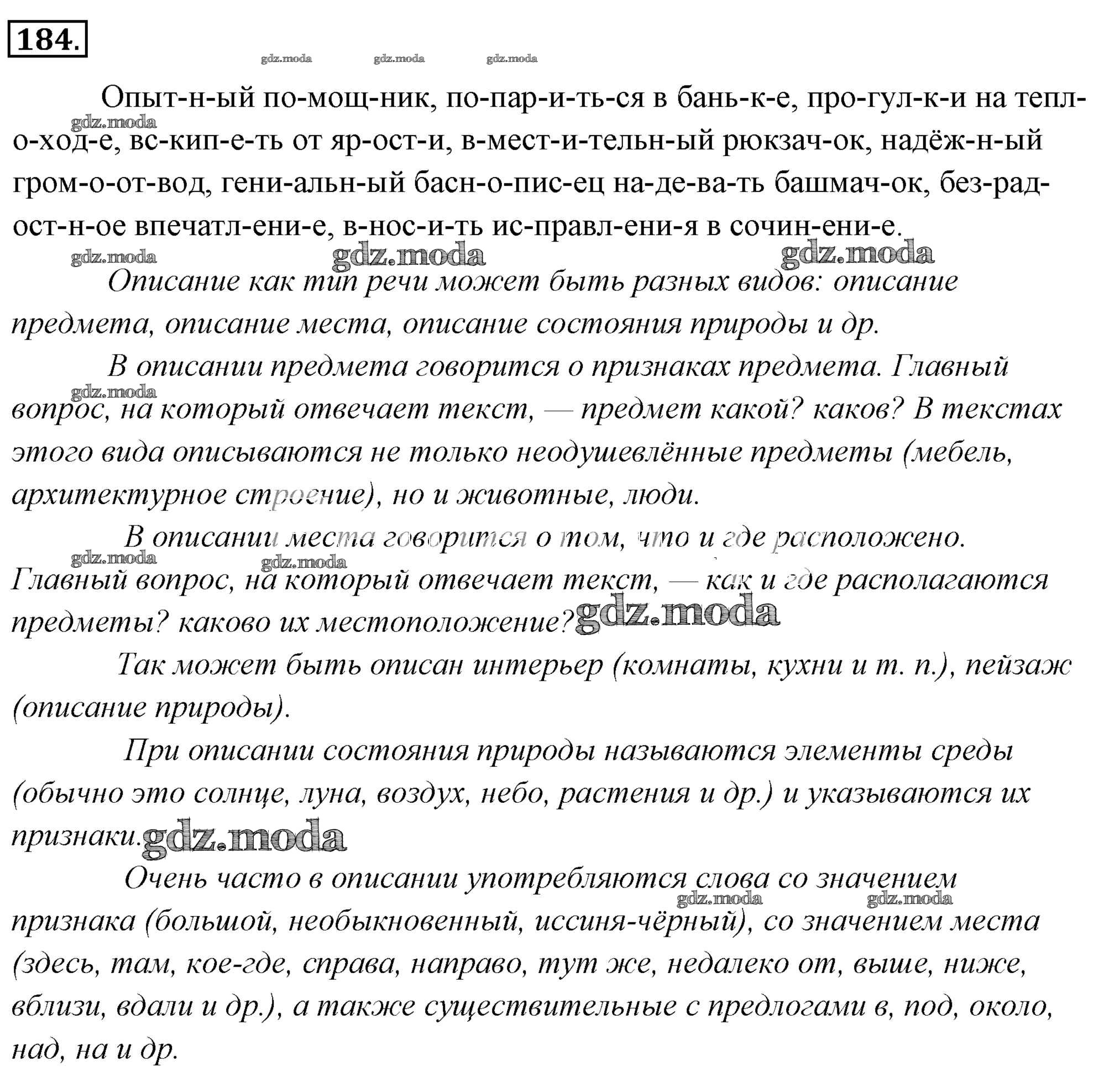 ГДЗ решение к заданию № 184 Русский язык 6 класс Львов Мнемозина 2013 Часть 1, Часть 2 ФГОС бесплатно на гдз.мода!