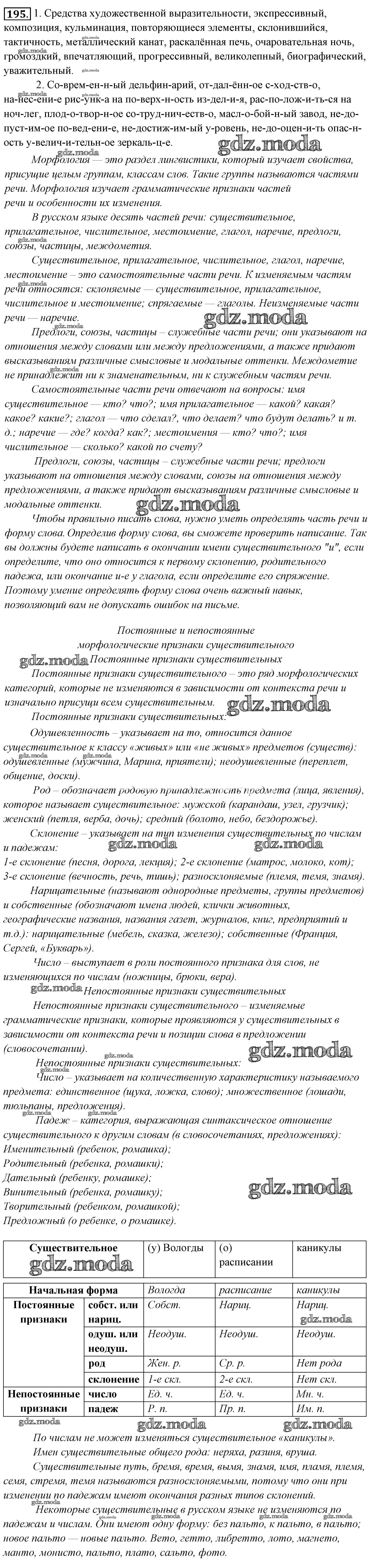 ГДЗ решение к заданию № 195 Русский язык 6 класс Львов Мнемозина 2013 Часть 1, Часть 2 ФГОС бесплатно на гдз.мода!