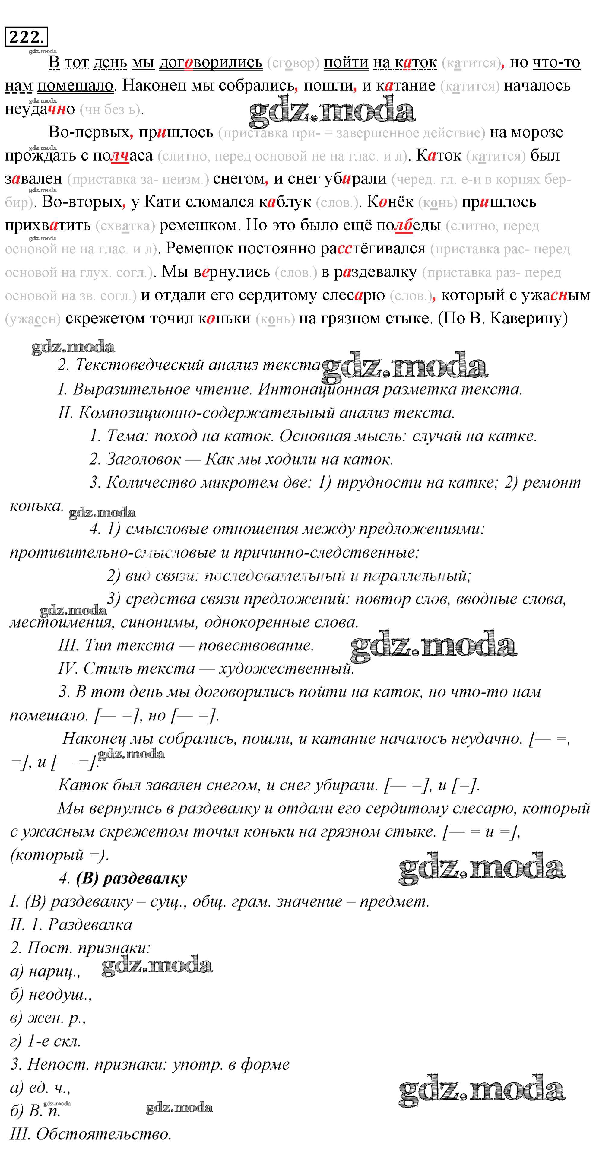 ОТВЕТ на задание № 222 Учебник по Русскому языку 6 класс Львова