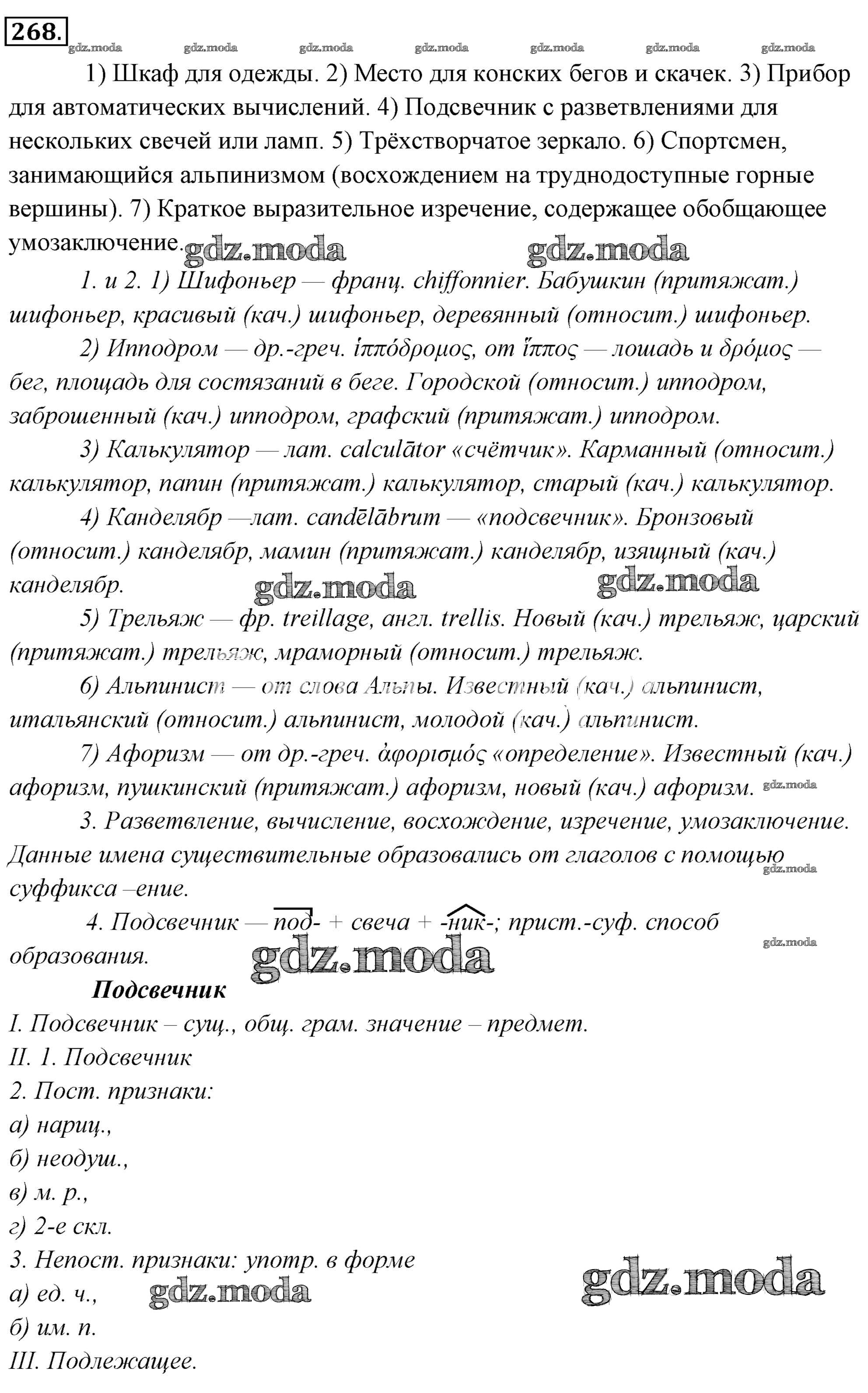 ОТВЕТ на задание № 268 Учебник по Русскому языку 6 класс Львова