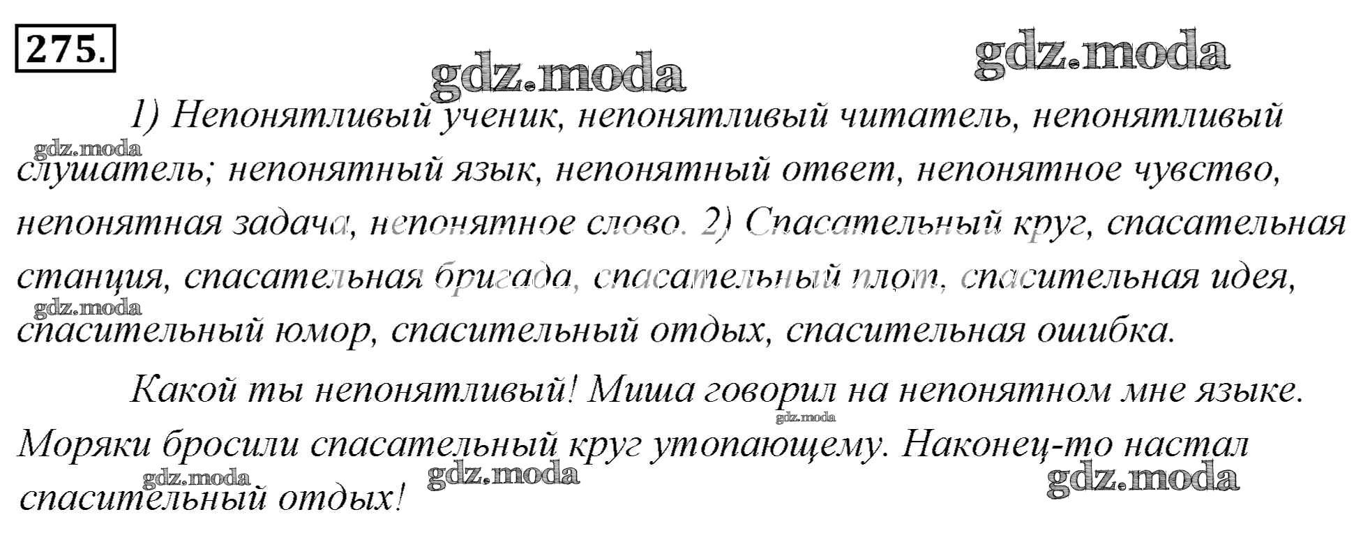 ОТВЕТ на задание № 275 Учебник по Русскому языку 6 класс Львова