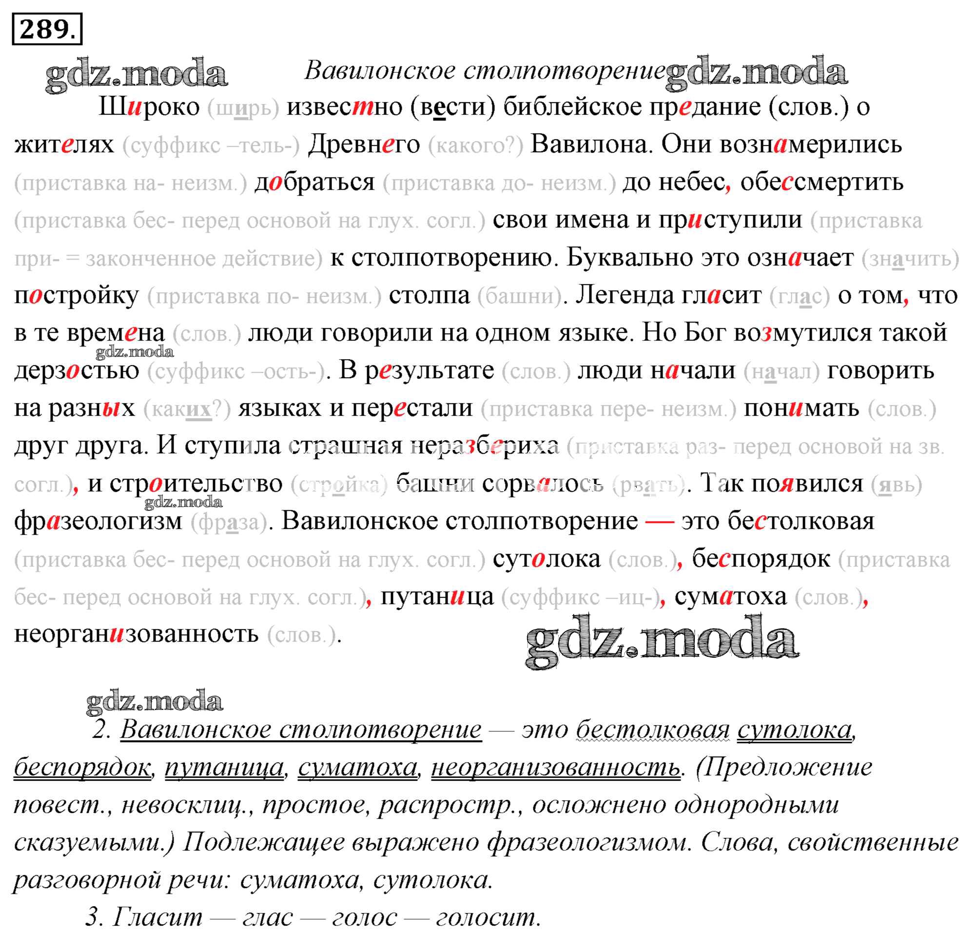 ОТВЕТ на задание № 289 Учебник по Русскому языку 6 класс Львова