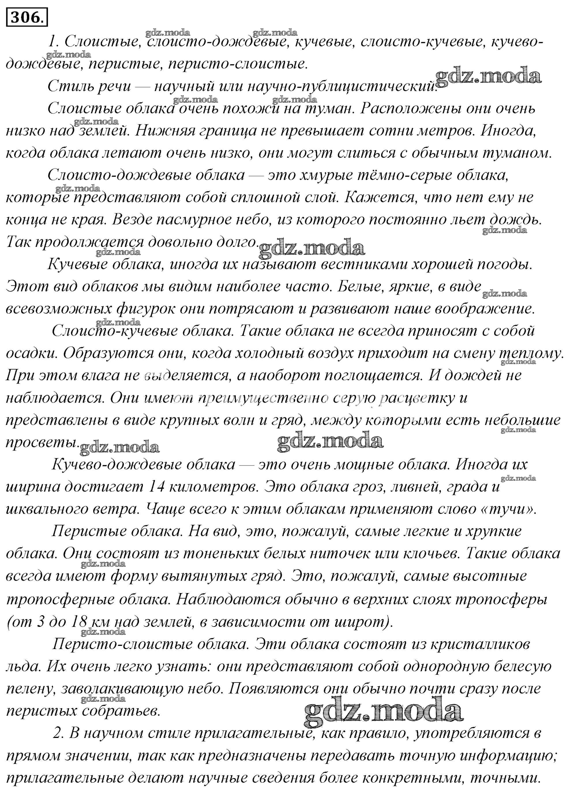 ОТВЕТ на задание № 306 Учебник по Русскому языку 6 класс Львова