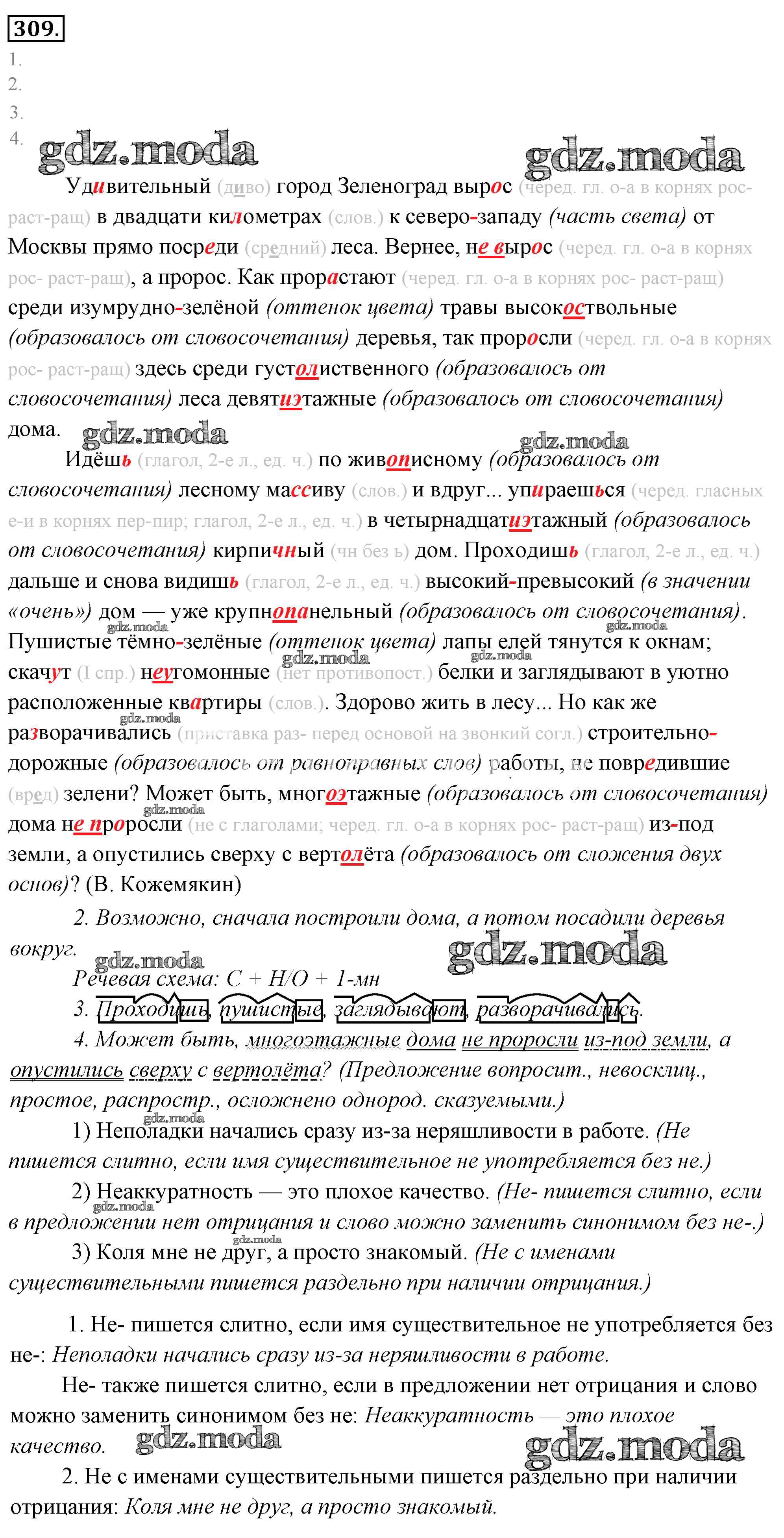 ГДЗ решение к заданию № 309 Русский язык 6 класс Львов Мнемозина 2013 Часть 1, Часть 2 ФГОС бесплатно на гдз.мода!