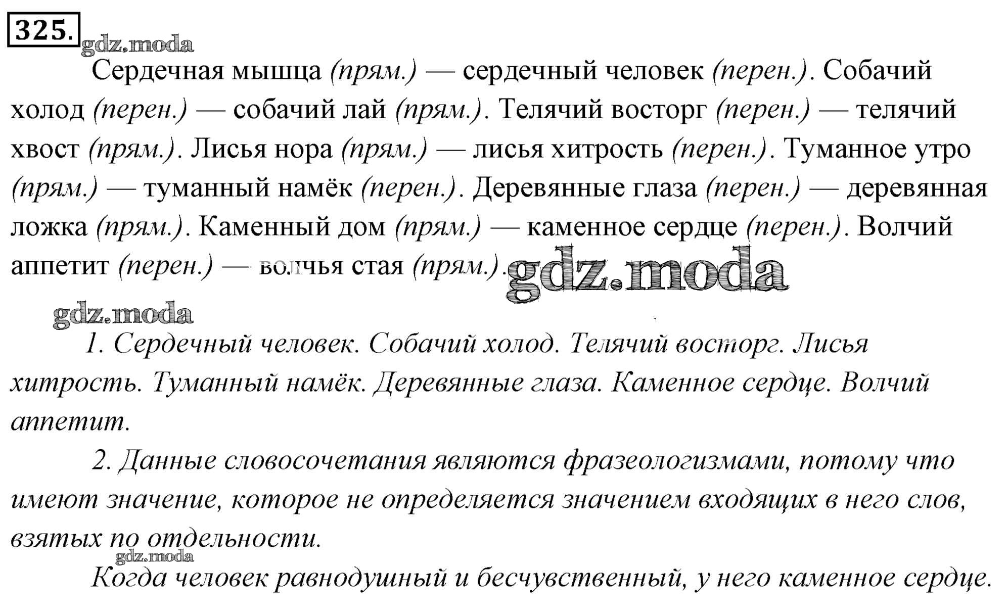 ОТВЕТ на задание № 325 Учебник по Русскому языку 6 класс Львова