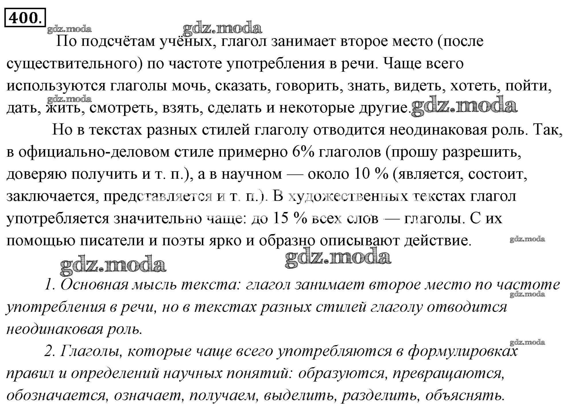 ГДЗ решение к заданию № 400 Русский язык 6 класс Львов Мнемозина 2013 Часть 1, Часть 2 ФГОС бесплатно на гдз.мода!