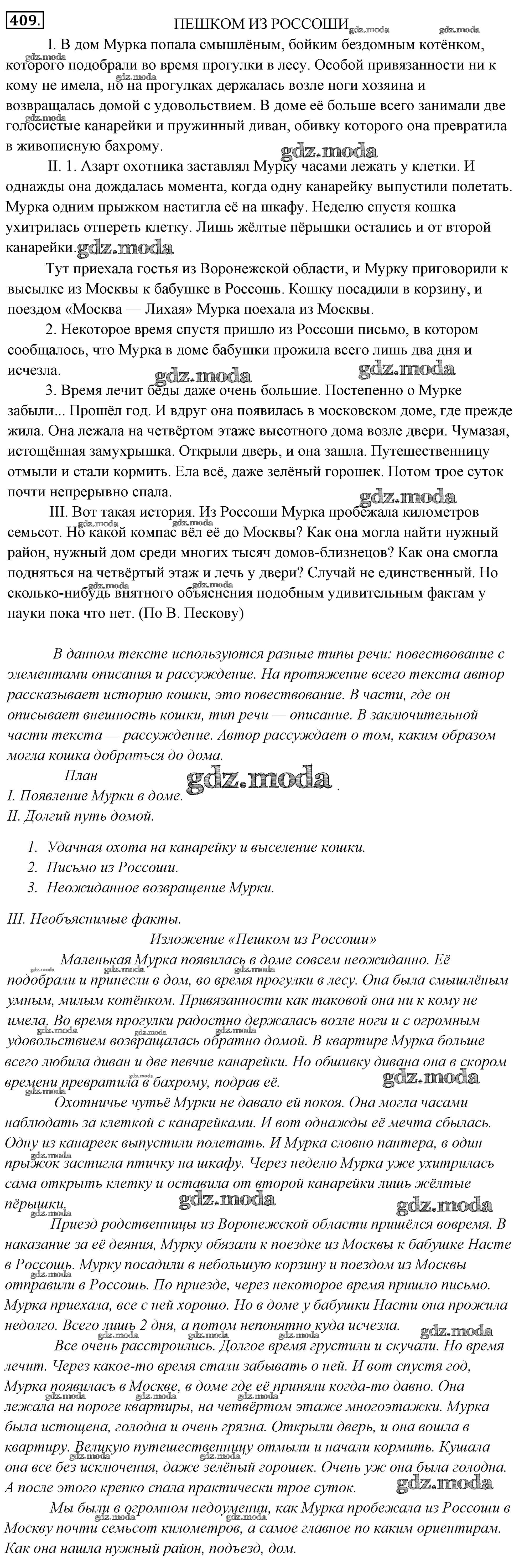 ОТВЕТ на задание № 409 Учебник по Русскому языку 6 класс Львова